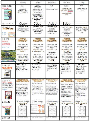 (Just a quick note- you MAY (or may not) notice my reading groups are not very thorough this week. Not mentioning any names... but SOME little almost two year old boy took my notecard with my group plans written on it and I can't for the life of me remember everything I already have ready for all 5 groups! So I'll update those in the morning when I get to school. ;) )